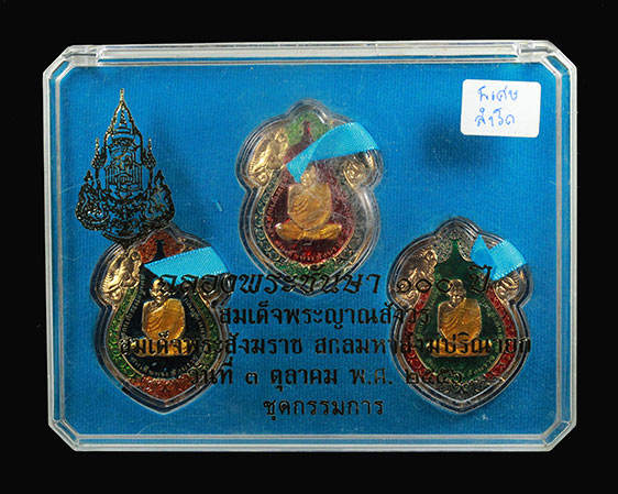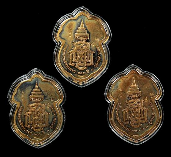 ครบชุดฉลองพระชันษา100ปี สมเด็จพระญาณสังวร ขนาดใหญ่ เนื้อสำริดลงยา 3 เหรียญ เคาะเดียว
