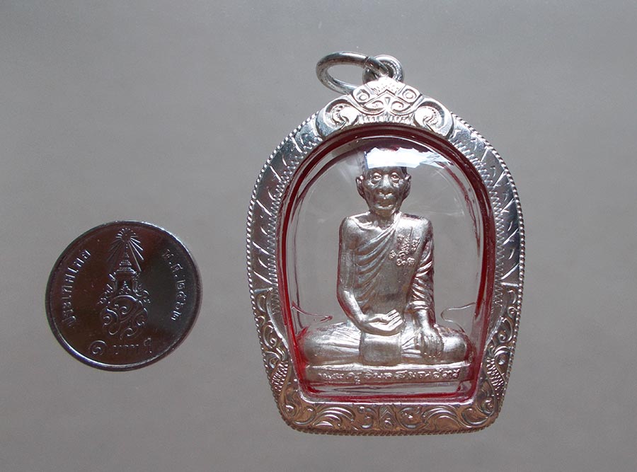 รูปเหมือนปั้ม รุ่นเพชรกลับ หลวงพ่อเพี้ยน วัดเกริ่นกฐิน จ.ลพบุรี ไตรมาส พ.ศ.2555 เนื้อเงิน ตอกโค๊ต ตอกเลข เลี่ยมกรอบเงินยกซุ้มสวยมาก !!