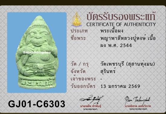 ปี 2544 เนื้อผง พร้อมบัตรรับรองสมาคม