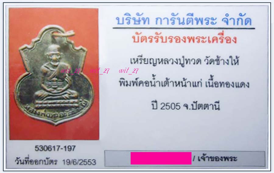 เหรียญคอน้ำเต้าหลวงปู่ทวด-พิมพ์หน้าแก่-เนื้อทองแดงรมดำ-ปี 2505 วัดช้างให้ ปัตตานี..พร้อมบัตรรับรอง G-Pra...
