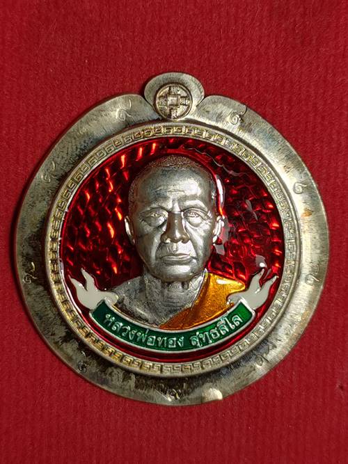 รุ่นแรกเหรียญขวัญถุง มหาโชคมังกรคู่ หลวงพ่อทอง สุทธสีโล ออกวัดบ้านไร่ ปี 62 เนื้อ เงินลงยาสีแดงพิมพ์กรรมการไม่ตัดปีกหลังเรียบ หมายเลข 24 ตอกโค๊ตเลข 9 เก้าตัว เคาะเดียวแดง