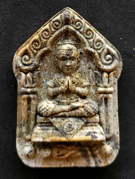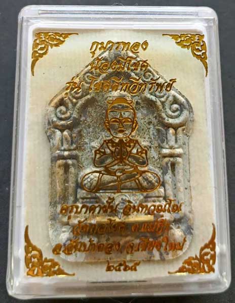 ฝังตะกรุดทองคำ (ใต้ฐาน) ตะกรุดเงิน (ด้านหลัง)