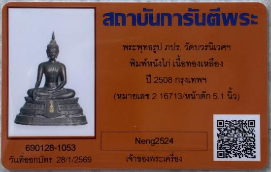 Hot Hot Hot ราคากำลังแรงมากๆ พระพุทธรูป ภปร. วัดบวรนิเวศฯ พิมพ์หนังไก่ เนื้อทองเหลือง ปี 2508 กรุงเทพฯ (หมายเลข 2 16713/หน้าตัก 5.1 นิ้ว) + บัตร g pra ครับ