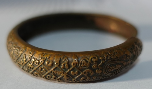 กำไลเขี้ยวแก้วประกาศิตมหาเศรษฐี หลวงปู่กาหลง ปี 2551 เนื้อนวโลหะ สภาพใช้ |