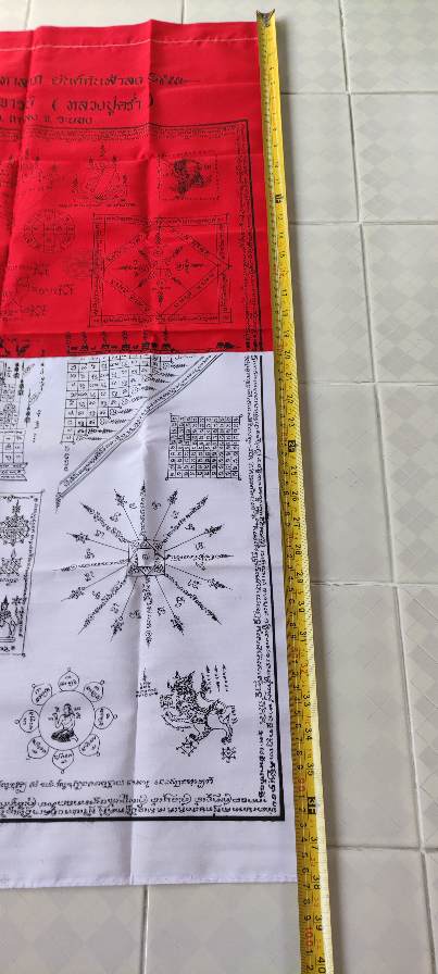 ผ้ายันต์พัดโบกมหาลาภ ยันต์กันฟ้าลง หลวงปู่คร่ำ วัดวังหว้า จ.ระยอง กว้าง23นิ้ว ยาว38นิ้ว