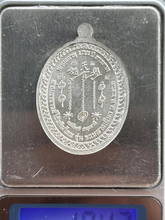 เคาะเดียวเหรียญเซียน อา แปะโรงสี รวยทางเดียว ปี 2563 พิธีเสกหลายวาระ เกจิเสกเพียบ เนื้อเงินลงยาหน้ากากทองคำ มีกล่องเดิม |