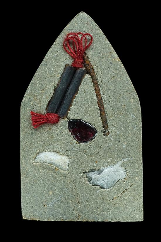 พระขุนแผนอินโดจีน เนื้อผงพราย หลวงพ่อชำนาญ วัดชินฯ วาระอายุวัฒนมงคล๕๕ ปิดทอง ฝังกะกรุดสาริกาทองแดง ตะปู 1ดอก มีพลอย กระดูก สวยๆครับ