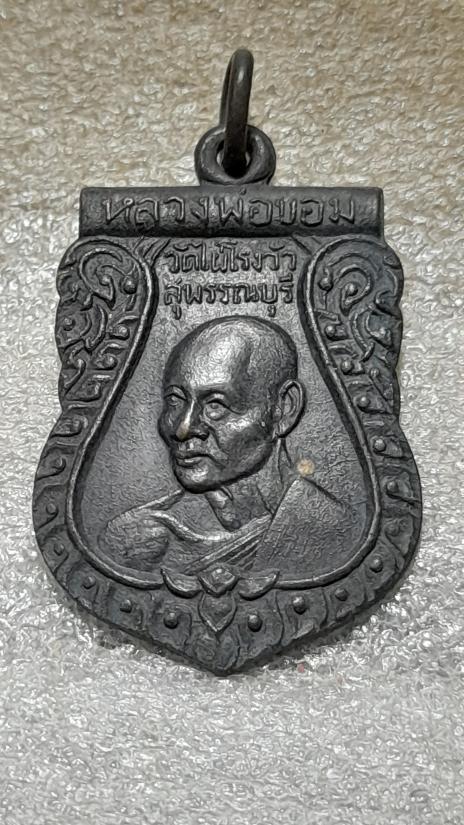 วัดใจเคาะเดียว........100.......เหรียญเสมา หลวงพ่อขอม วัดไผ่โรงวัว สุพรรณบุรี ปี 2507 ทองแดงรมดำ ห่วงเชื่อมเดิม สวย |