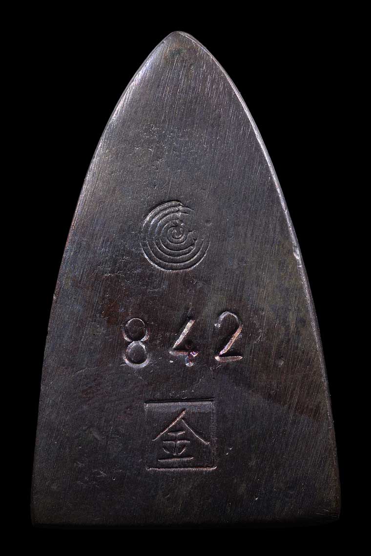 หลวงปู่ทวด รุ่นมงคล ๙ อาจารย์ทอง วัดสำเภาเชย ปี 2547 พิมพ์เตารีดกรรมการ เนื้อนวโลหะ เลข 842