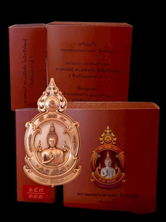 ชื่อพระเครื่อง กราบขออนุญาตท่านอ.เฉลิมชัย โฆษิตพิพัฒน์ นำเสนอ เหรียญปั๊ม "พระพุทธประทานพร" ที่ระลึกวัดร่องขุ่น เนื้อทองแดงซาติน หมายเลข ๑๔๗/๓๓๓ อุปกรณ์ครบ