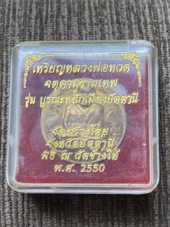 เหรียญรุ่นบูรณะหลักเมืองปัตตานี หลวงพ่อทวด จตุคาม พิธีวัดช้างให้ ปี 50 เนื้อสำริด ขนาด 3.2 ซม ยิงโค็ตเลเซอร์ พร้อมหลายเลขกำกับมาพร้อมกล่องเดิม เคาะเดียว รับประกันตามกฎ