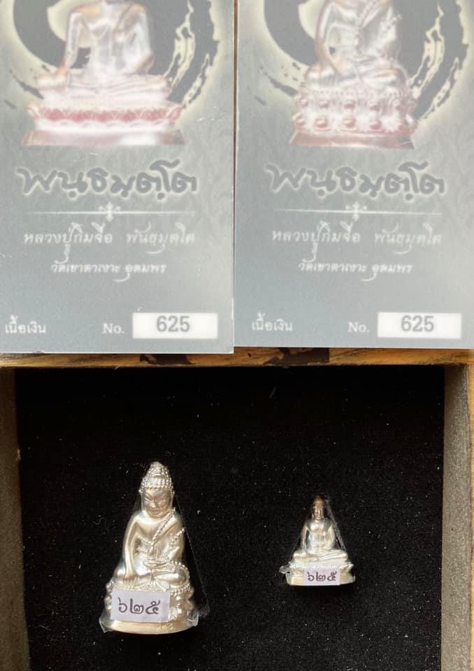 หลวงปู่จื่อกริ่งวัดจัดสร้างรุ่นแรกเนื้อเงิน กล่องไม้เดิม