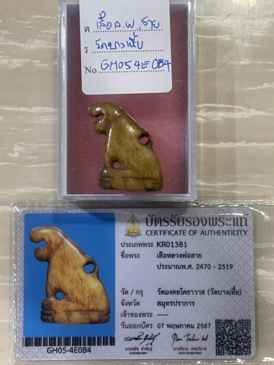 (เคาะแดง6900) +บัตรสมาคม กระดูกเสือแกะ เสือหลวงพ่อสาย วัดบางเหี้ย