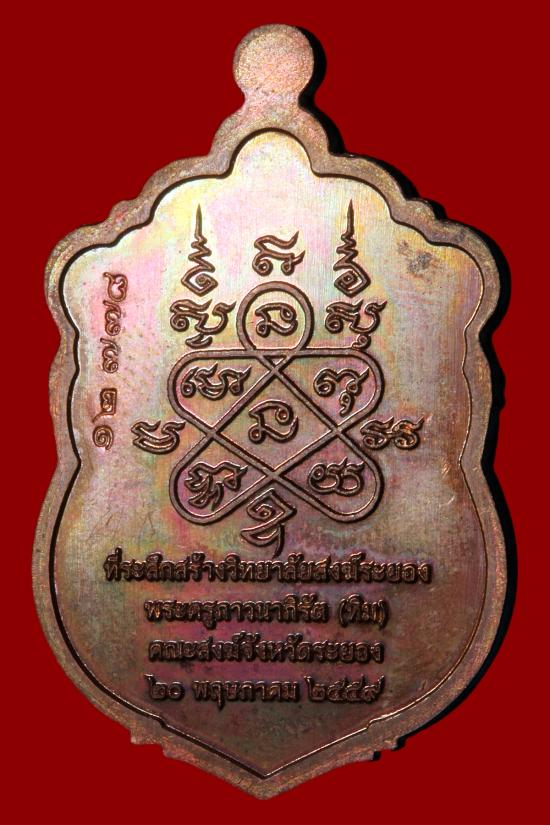 หลวงปู่ทิม วัดละหารไร่ เหรียญเสมา รุ่น มหาบารมี 59 เนื้อทองแดงมันผิวรุ้ง ลงยา หน้ากากเงิน ขอบปลอกลูกปืนลงยา หมายเลข 12778