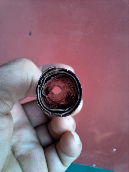 ตะกรุดเปลือยทองแดงเก่า ไม่ทราบที่ ยาวประมาณ 5 นิ้ว