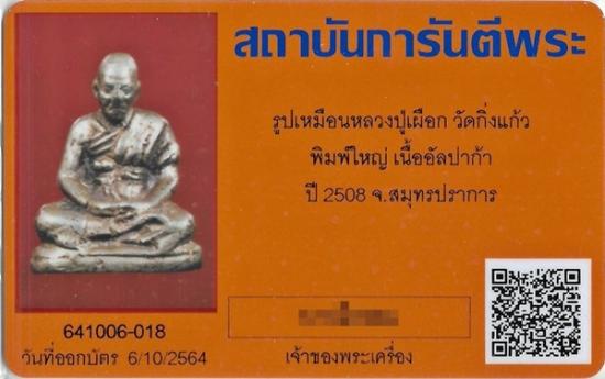 รูปหล่อโบราณ ลป.เผือก วัดกิ่งแก้ว ปี 2508 อุดกริ่ง เนื้ออัลปาก้า พิมพ์ใหญ่ พร้อมบัตรฯ