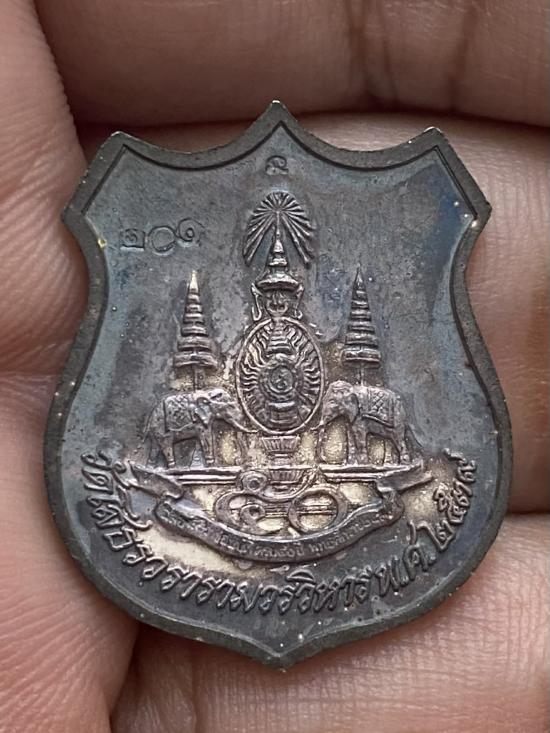 เหรียญหลวงพ่อพระพุทธโสธรทรงอาร์มเนื้อเงินลงยาราชาวดี ปี ๒๕๓๙ รุ่น ๕๐ ปี กาญจนาภิเษก พระออกจากวัดโสธรวรารามวรวิหาร