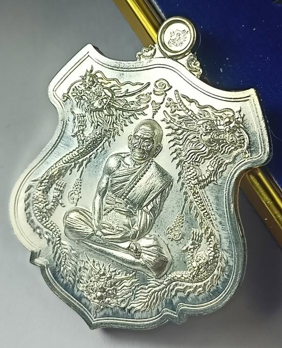 เหรียญมังกรคู่เหนือดวง หลวงปู่หลิน จันทสาโร สำนักสงฆ์บ่อศิลาหงษ์ทอง เนื้อเงิน เบอร์ 155 พร้อมกล่องเดิมครับ (เหรียญหนัก 21.18 กรัม)