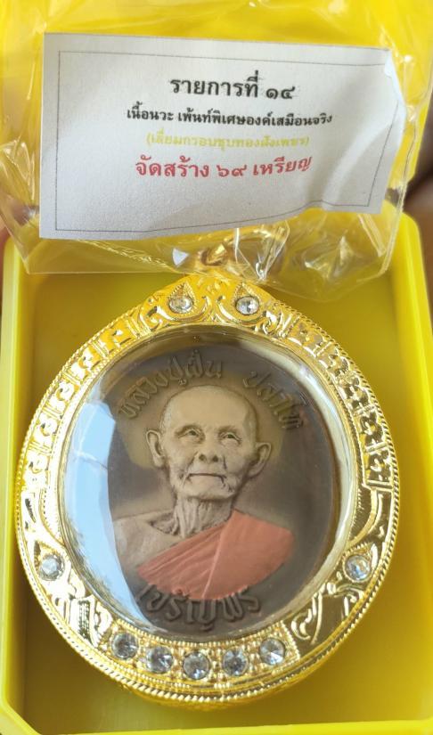 เหรียญ"เจริญพรล่าง"วาระ๘รอบ๙๖พรรษา หลวงปู่ฝั้น ปสาโท วัดศรีถมอรัตน์(หน้าผา)จ.เพชรบูรณ์ เนื้อนวะโลหะ เพ้นท์เสมือนจริง หลังยันต์มงกุฎ เลี่ยมกรอบชุบทองฝังเพชร หมายเลข ๓๗ พร้อมกล่อง เก็บทั้งทีเก็บเนื้อหลักๆราคาย่อมเยา สวยๆเลยคับ สร้าง๖๙เหรียญ ท่านเป็นศิษย์ลพ.เดิม วัดหนองโพจ.นครสวรรค์