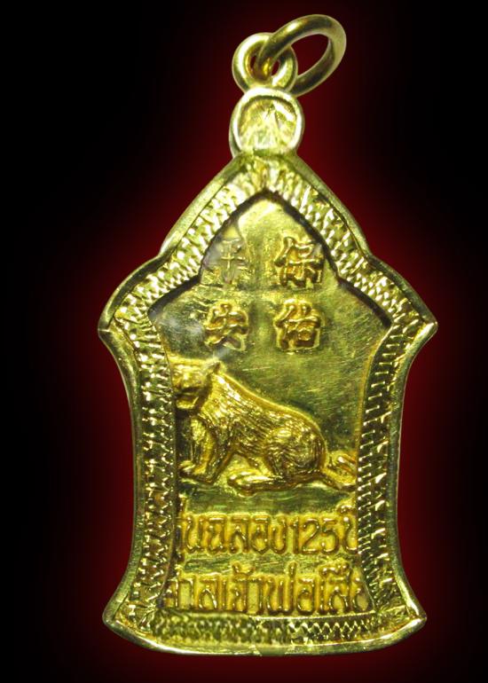 เหรียญรูปเหมือนเจ้าพ่อเสือ (ตั่วเหล่าเอี้ย) ศาลเจ้าพ่อเสือ เสาชิงช้า รุ่นฉลอง ๑๒๕ ปี (รุ่น4) ปี 2538 เนื้อทองคำ เลี่ยมทองสั่งทำหนาๆ