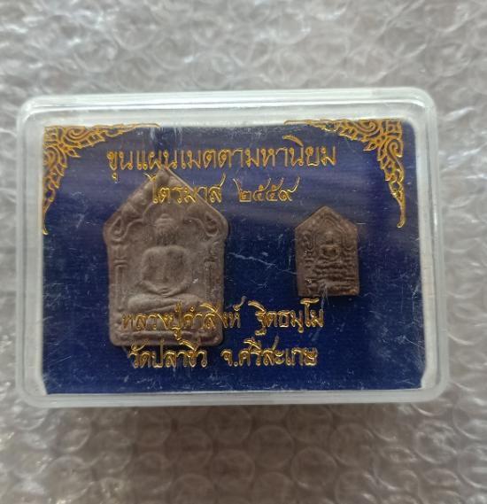 ขุนแผนพิมพ์ใหญ่หลังติดแผ่นปั๊มรูปเหมือนเนื้อเงิน +พิมพ์เล็ก หลวงปู่คำสิงห์ วัดปลาซิว ศรีสะเกษ