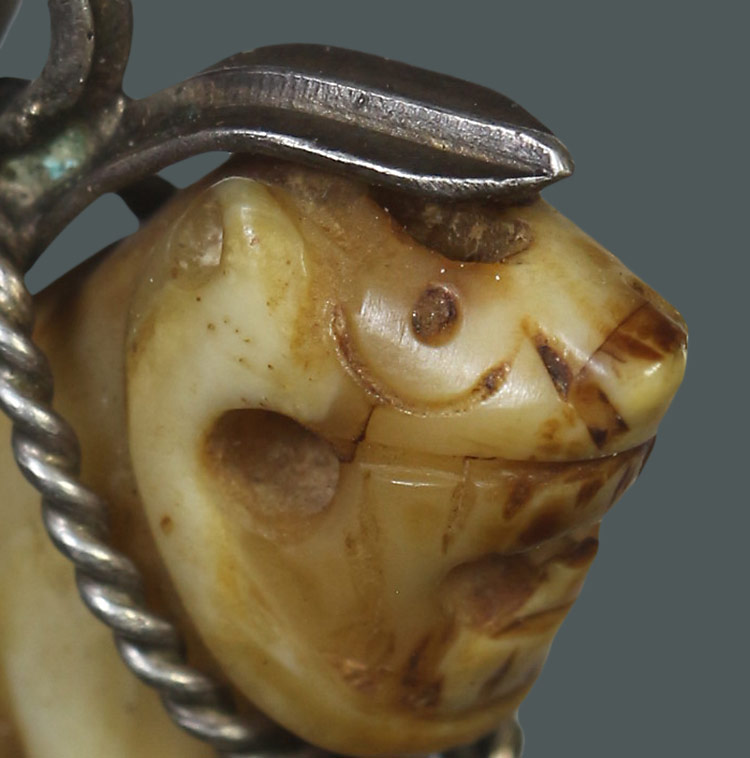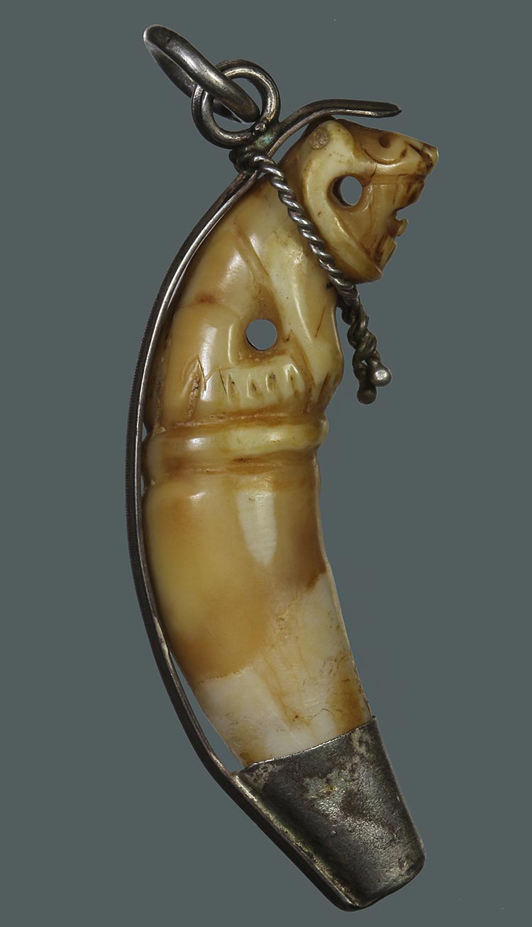 วัดใจ**เครื่องราง*{ เขี้ยวเสือไฟแกะรูปเสือเต็มเขี้ยว }*หุ้มเงินเก่า ยาว 2.นิ้ว ของทนสิทธิ์มีดีในตัว เป็นมหาอำนาจ หายาก...ตามสภาพครับ