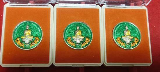 เหรียญ หนุนดวงเศรษฐีปลดหนี้ พระพุทธปราสาททอง(หลวงพ่อใหญ่) วัดปราสาท(โบราณสถานแห่งชาติ) จ.นนทบุรี ปี2565 เนื้อกะหลั่ยเงินลงยาเขียว สร้าง199องค์ จององค์ละ499บาท เปิด3องค์ หมายเลข156/197/158 ประกันแท้