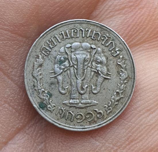 เหรียญกษาปณ์(เนื้อนิเกิล) 2สตางค์ครึ่ง รัชกาลที่5 (หน้า)ช้างสามเศียร ร.ศ.116 เหรียญสยามราชอาณาจักร หายากมาก