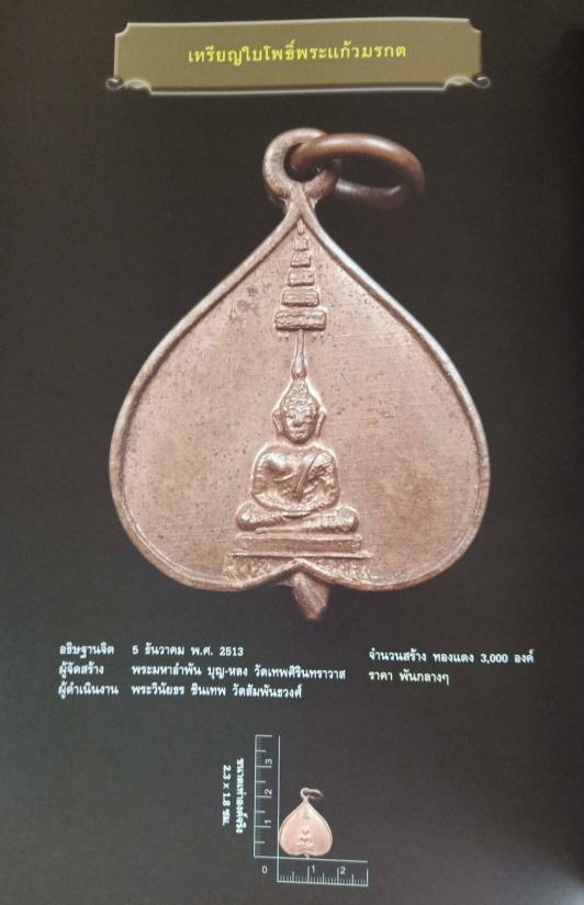 เหรียญพระพุทธมหามณีรัตน์ใบโพธิ ์ (พระแก้วมรกต) จัดสร้างขึ้น โดยพระครูปัญญาภรณ์ หรือพระมหาอำพันธ์ (บุญ-หลง) วัดเทพศิรินทราวาส