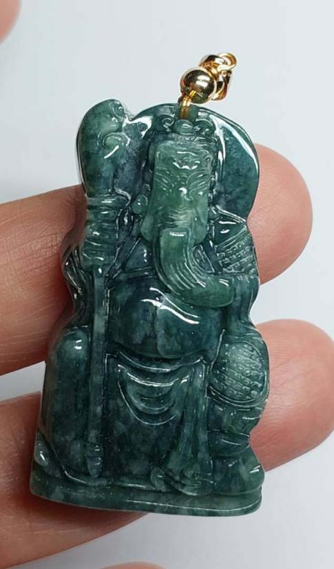 จี้หยกเทพเจ้ากวนอู หยกพม่า เนื้อโอเชียนบลู ขนาดสูง 2 นิ้ว