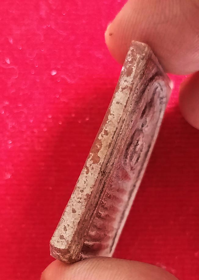พระสมเด็จหลวงพ่อกวย วัดโฆสิตาราม จังหวัดชัยนาท พิมพ์วัดเกศไชโย ๗ ชั้น เนื้อผงน้ำมัน มีรอยบิ่นมุมซ้าย