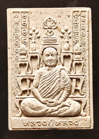 พระผงรูปเหมือนหลังโต๊ะหมู่รุ่นแรกหลวงปู่หลวง กตปุญโญ สำนักสงฆ์คีรีสุบรรพต จ.ลำปาง ปี๒๕๔๒ เนื้อผงพุทธคุณแก่น้ำมัน ด้านหลังฝังพลอยดิบ หมายเลข "7822" สภาพสวยไม่ผ่านการใช้ นอนมาพร้อมกล่องเดิม รับประกันแท้และตามหลักสากล