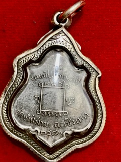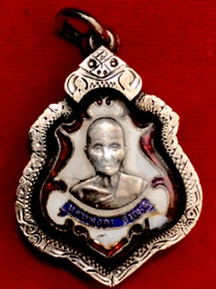 เหรียญหลวงพ่อคง รุ่นแรก พ.ศ.๒๔๘๓ เนื้อเงินลงยา วัดซำป่าง่าม จ.ฉะเชิงเทรา เลี่ยมกรอบเงิน