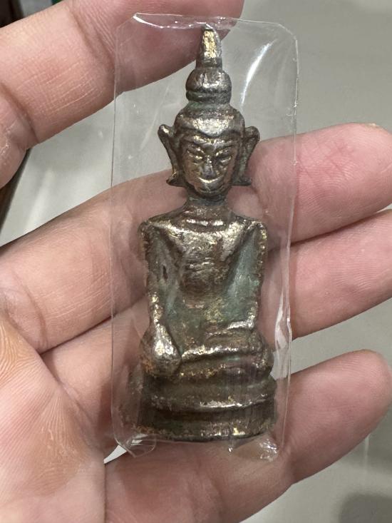 พระพุทธปางมารศรีวิชัย เนื้อชินเงิน ขนาดประมาณ 3 นิ้ว คาดว่าจะเป็นกรุวัดนาคาม อ.ร่อนพิบูลย์ จ.นครศรีธรรมราช
