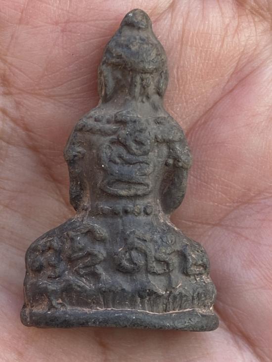 พระปิดตาลอยองค์ เนื้อผงใบลาย ด้านหน้ามียันต์ตรงท้อง และด้านหลังมียันต์ ไม่ทราบที่ครับ เคาะเดียวพอครับรับประกันตามกฎ