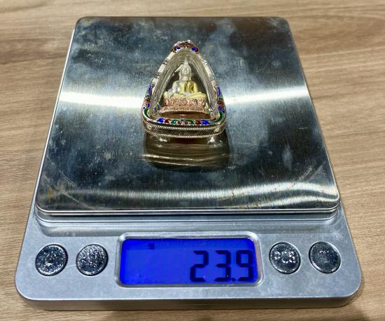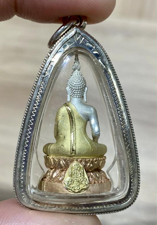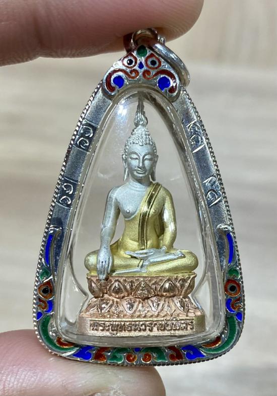 พระกริ่งพระพุทธนวราชบพิตร 2540 เนื้อเงินสามกษัตริย์ พิมพ์ใหญ่ เลี่ยมเงินลงยา (ผิวเดิมสวย เลี่ยมเก็บผิว)