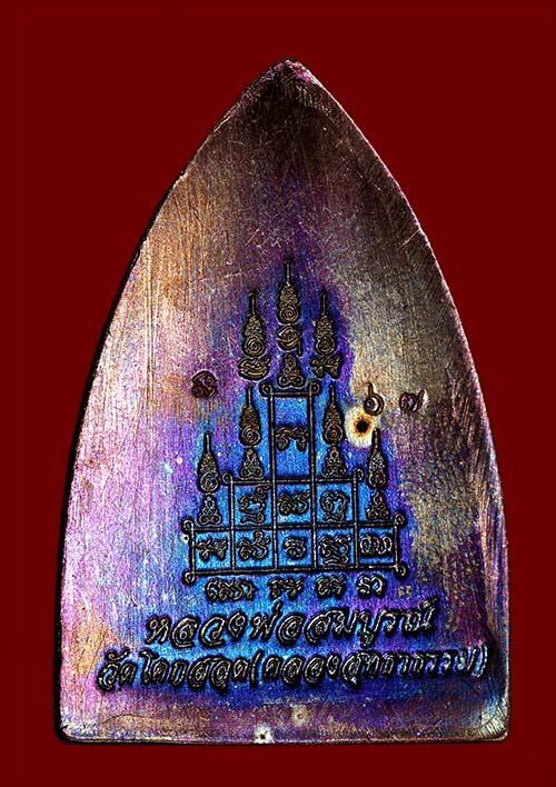 เนื้อนวะโลหะ พิมพ์หลังยันต์สิบ ฐานอุดมวลสาร