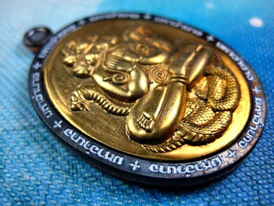 หรียญปิดตาพังพระกาฬมหาอำนาจ หลวงปู่อิ่ม วัดทุ่งนาใหม่ จ.นครศรีธรรมราช เนื้อทองแดง หน้ากากทองทิพย์ สวยๆ (---A50---)
