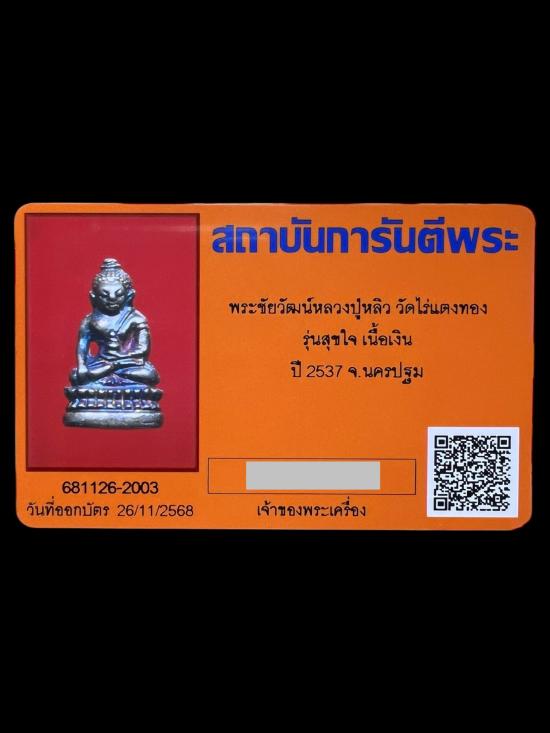 เคาะเดียวแดง พระชัยวัฒน์ หลวงปู่หลิว วัดไร่แตงทอง รุ่นสุขใจ ปี ๒๕๓๗ เนื้อเงิน ผิวรุ้งๆเดิมๆ สร้างน้อย ๑ใน1000องค์ มาพร้อมบัตรรับรอง Gpra
