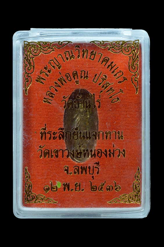 เหรียญ ( เล็ก ) รูปเหมือนหลวงพ่อคูณถือปะคำ รุ่น ที่ระลึกแจกทาน วัดเขาวงษ์หนองม่วง จ.ลพบุรี ( เนื้อโลหะผสม ) พ.ศ.2536 ( กล่องเดิม )