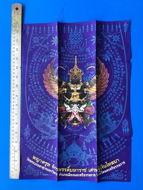 เคาะเดียวแดง 100 ผ้ายันต์ พญาครุฑ รุ่น เศรษฐีเงินไหลมา วัดพระศรีมหาธาตุวรมหาวิหาร จ.นครศรีธรรมราช สีน้ำเงิน ขนาด A3 ขนาด 11.5 นิ้ว x 16.5 นิ้ว