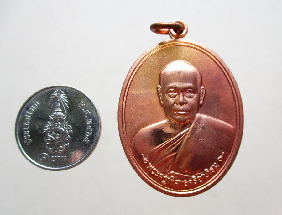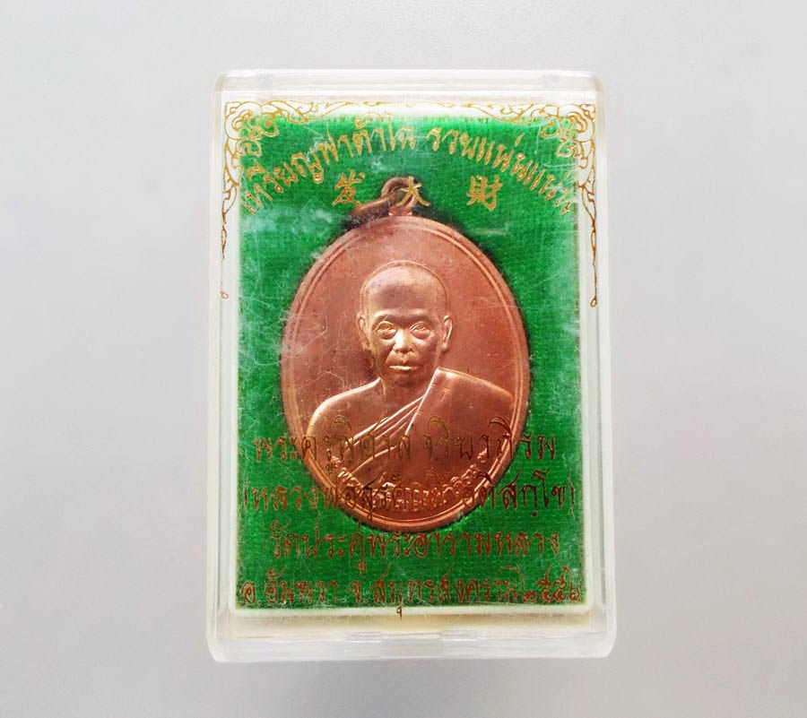 เหรียญฟาต้าไฉ่รวยแน่นแน่น พระมหาสุรศักดิ์ วัดประดู่พระอารามหลวง จ.สมุทรสงคราม พ.ศ. 2556 เนื้อทองแดง ตอกโค๊ต ตอกเลข กล่องเดิม