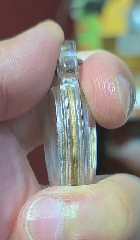 เหรียญย้อนยุคครูบาศรีวิชัย 2482 ปี 2518 วัดสวนดอก จ.เชียงใหมเจ้าของเดิมเลี่ยมกันน้ำพร้อมใช้ที่มาดีพระบ้านพ่อเจ้าของไปทำบุญที่วัดสวนดอกเช่าเก็บเป็นที่ระลึกใช้มาตลอดและมอบให้ลูกลูกนำมาเลี่ยมกันน้ำสภาพตามรูป