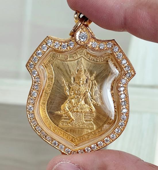 เหรียญท้าวมหาพรหม รุ่นเจ้าสัวพันล้าน(บอย ท่าพระจันทร์) เนื้อกะไหล่ทอง No. ๑๗๒๒ กล่องเดิม พร้อมเลี่ยมกรอบอิตาลีกันน้ำ ไม่ผ่านการใช้