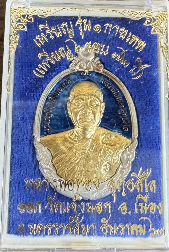 เหรียญ หลวงพ่อทอง สุทฺธสีโล รุ่น1กายเทพ เนื้อเงินลงยาสีน้ำเงินหน้าทองคำ หมายเลขน้ำหนักเหรียญเนื้อเงินลงยาหน้าทองคำ16กรัม มีกล่องครับ
