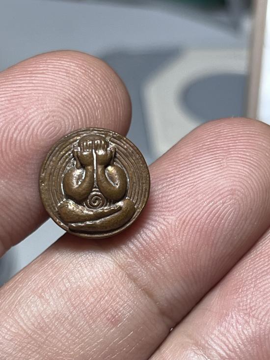 พระปิดตา พิมพ์เม็ดกระดุม เนื้อทองแดงเถื่อน หลวงพ่อคล้อย อโนโม วัดภูเขาทอง จ.พัทลุง ตอกโค๊ดสวย พิธีดีสายเขาอ้อ น่าใช้
