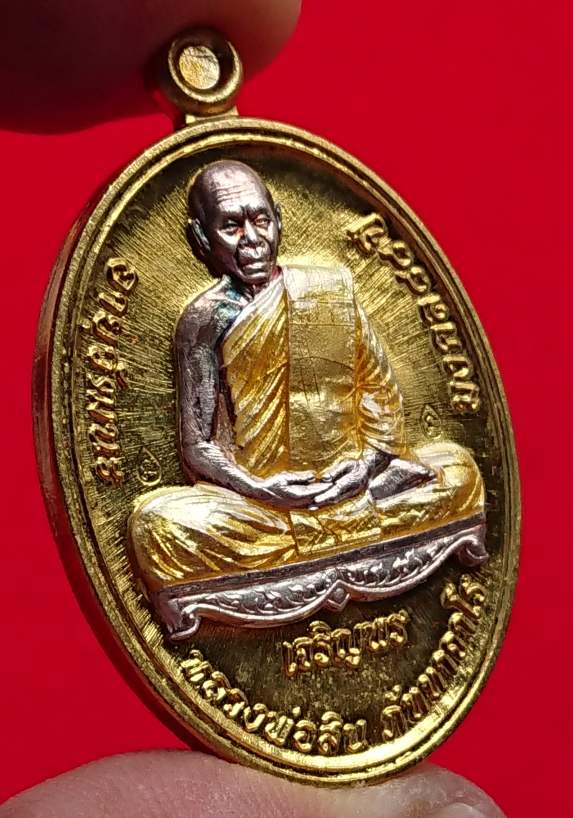 1ใน588เหรียญ เหรียญเจริญพรล่าง อายุวัฒนะ มงคล 88 ปี หลวงพ่อสิน วัดละหารใหญ่ เนื้อทองฝาบาตรหน้ากากเงินลงยาจีวรเหลือง