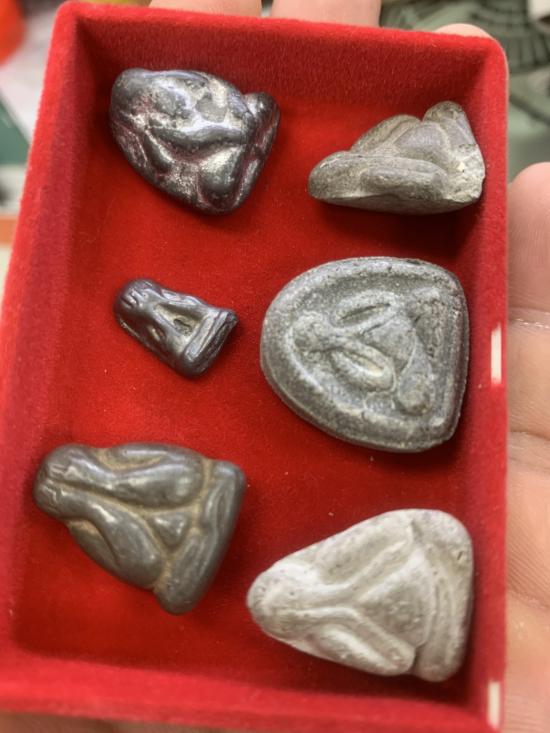 พระปิดตา 6 องค์ เนื้อตะกั่ว 3 องค์เนื้อผง3 องค์ เก่าไม่ทราบเกจิ