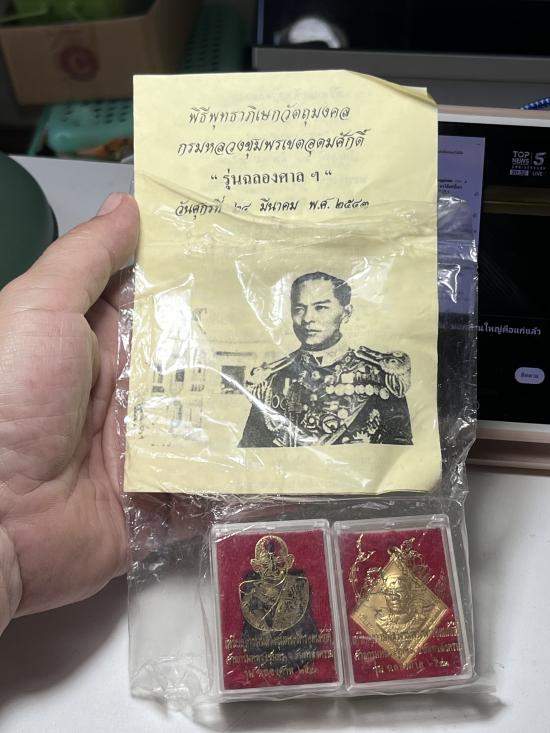 2 เหรียญ เหรียญกรมหลวงชุมพร รุ่นฉลองศาลกรมหลวงชุมพร จ.สมุทรสงคราม ปี ๒๕๔๓ ใบฝอยเดิมๆกล่องเดิมซองเดิมครับ