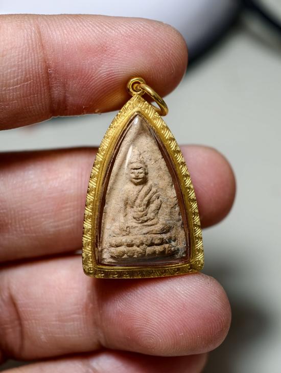 พระพุทโธน้อย พิมพ์กลางแขนหักศอก เนื้อดิน นิยม สวย หน้าตา จมูก ปากชัดๆ พร้อมทอง พร้อมบัตร
